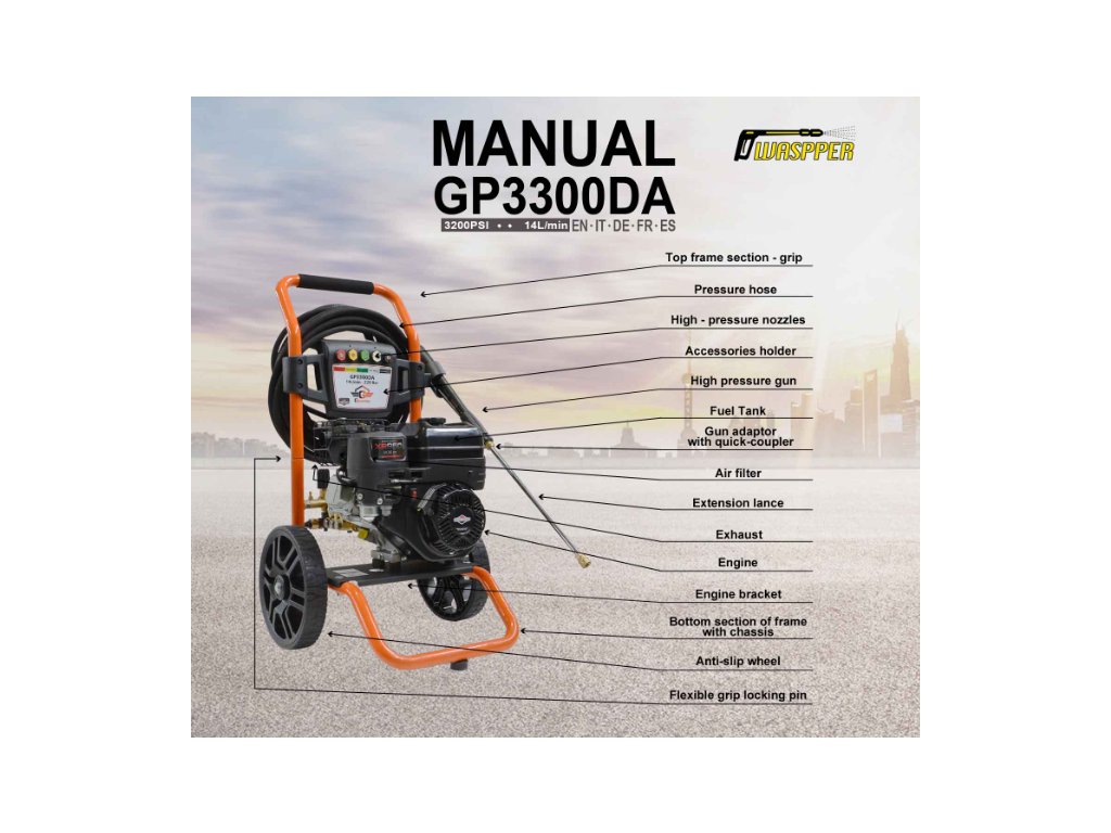S prémiovým vysokotlakovým čističom Gaspper GP3300DA je čistenie účinné. S pracovným tlakom 220 barov a prietokom vody 14 l/m je tento vysokotlakový čistič vhodný na najrôznejšie upratovacie a pieskovacie práce.