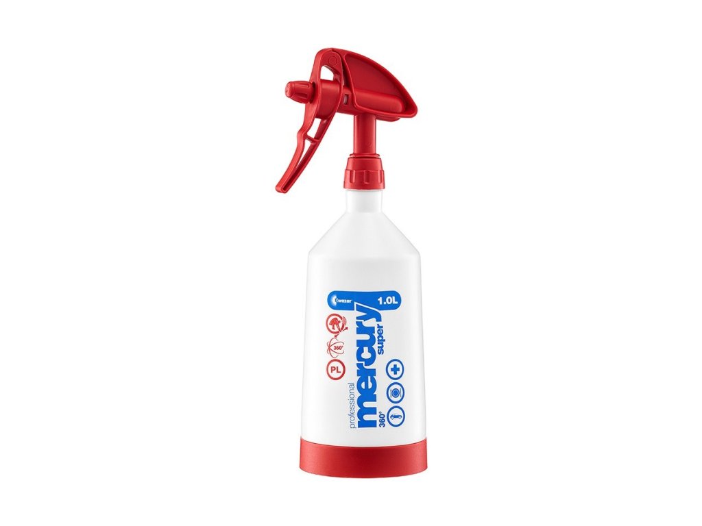 Merkury PRO+ Super 360 - ručný rozprašovač, určený pre ručné umývacie linky a taktiež sú výborné na domáce použitie. Obsahuje dvojčinný spúšťač, teda pri jednom stlačení rozprašovača, vypustíte dvojnásobnú dávku postreku. Pre zabezpečenie prenikaniu agresívnej chémie je použité patentované tesnenie Viton. Dávkovanie je možné z každej polohy, vďaka ohýbateľnej hadičke. K tomu dopomáha taktiež nastaviteľná tryska, ktorá umožňuje striekanie správnym smerom.