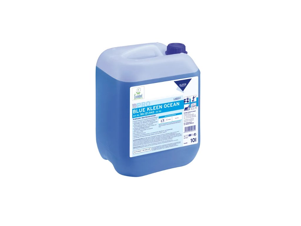 Kleen Purgatis Blue Kleen Ocean je rýchlo účinkujúci univerzálny čistiaci prostriedok so špeciálnou kombináciou účinných látok. Je ideálny na vlhké a mokré stieranie všetkých druhov povrchov s ochrannou vrstvou. Je kompatibilný s bežne dostupnými plošnými dezinfekčnými prostriedkami a pri použití v nezriedenej forme spoľahlivo odstraňuje znečistenie od atramentu, gumy a guľôčkových pier.