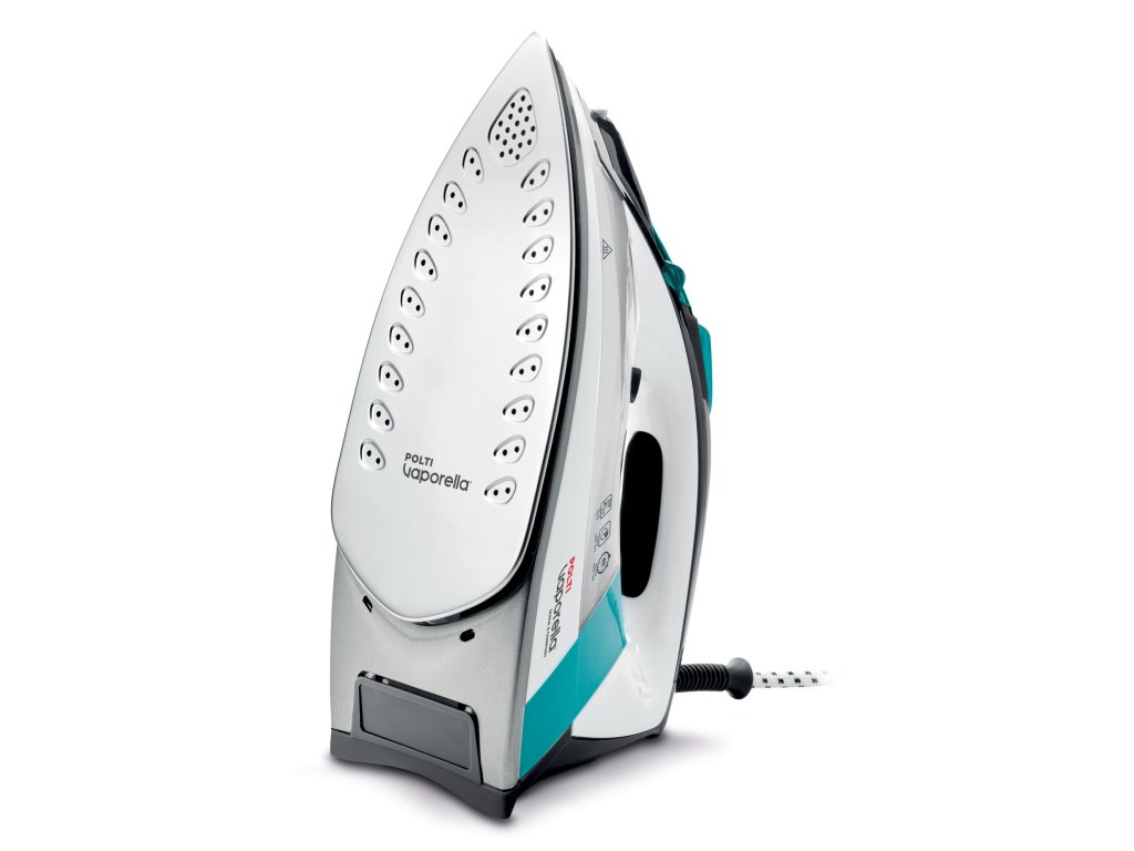Žehlička Polti Vaporella Quick & Comfort má žehliacu plochu z nehrdzavejúcej ocele s otvormi v špičke a po stranách, vďaka ktorým sa dosahuje rovnomerný rozptyl pary a teploty, ako aj vynikajúca odolnosť proti opotrebovaniu.