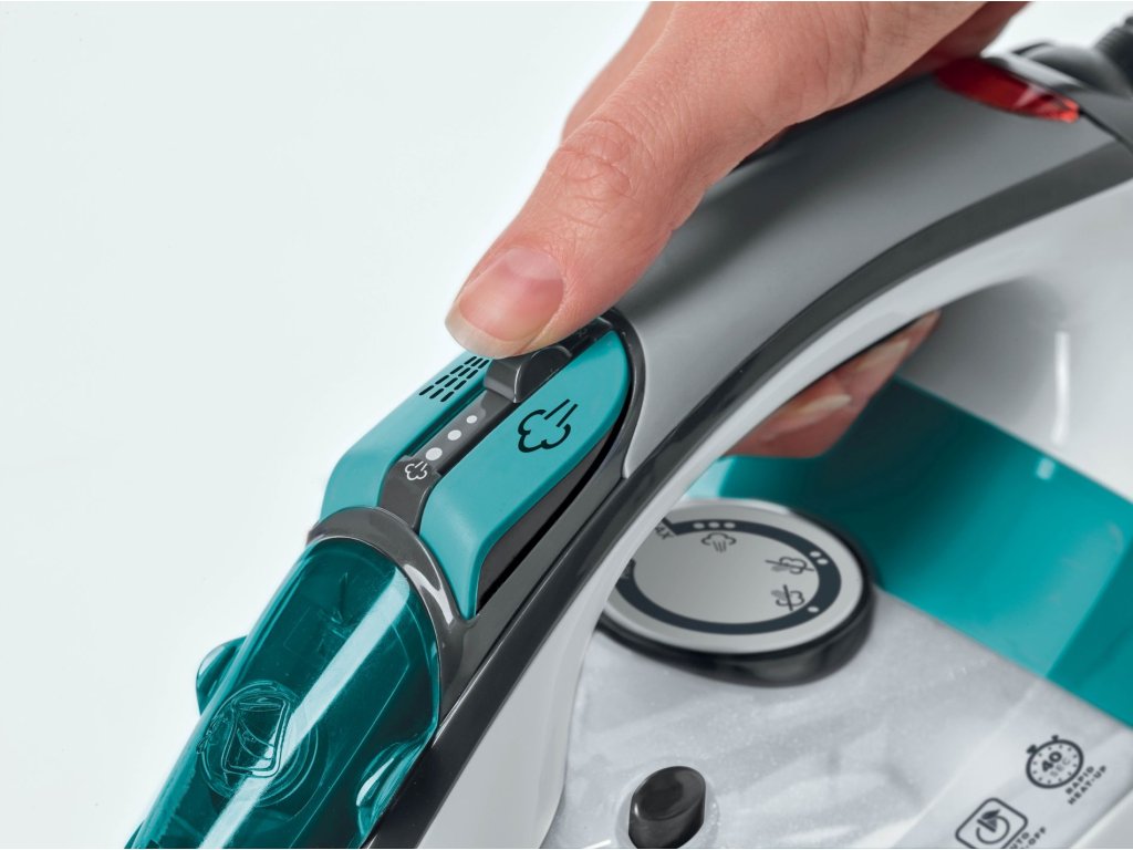 Na žehlenie a vyhladzovanie záhybov možno spustiť parný impulz, ktorý zvlhčí dané miesto a vy ho môžete rýchlo a jednoducho vyžehliť.
