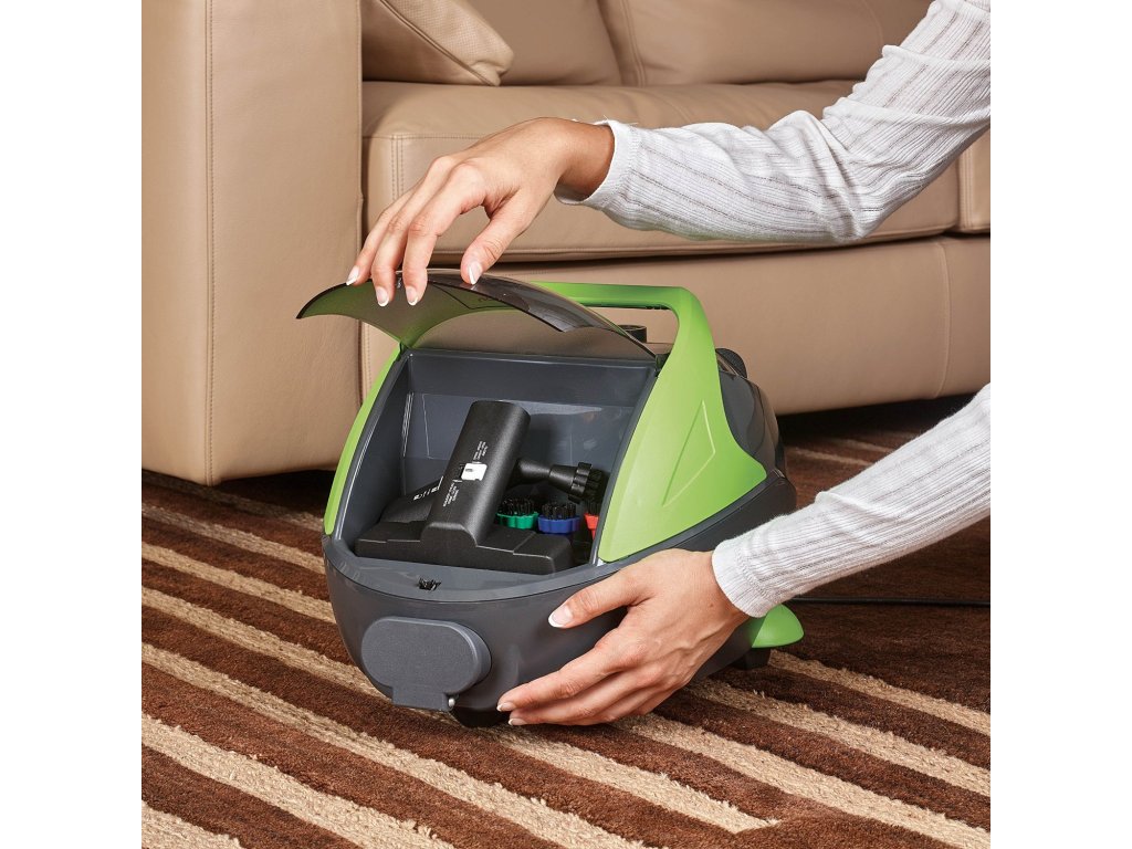 Vhodná na čistenie textílií, kože (bezdotykovo), okien alebo zrkadiel, dlaždíc, interiéru auta. Môže sa používať s výsuvným puzdrom.
