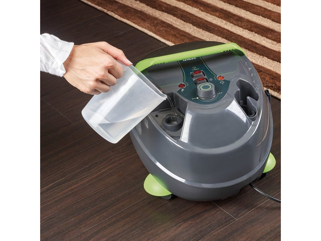 Funkcia ECO na zníženie spotreby energie Funkcia Turbo-Steam na odstránenie najodolnejších nečistôt Nastaviteľná intenzita pary - 5 úrovní Tlak pary 5 barov - preniká hlboko Nepretržitý výstup pary až 120 g/min. Účinný kotol vyrobený zo špeciálnej zliatiny Aluminium Extra ALP Ničí baktérie, vírusy, plesne a roztoče spôsobujúce alergie Široká škála príslušenstva (vyrobené v Taliansku) na čistenie najrôznejších povrchov Možnosť pripojenia voliteľného príslušenstva: parný mop, parná žehlička a parný dezinfektor Systém dopĺňania vody: priebežný Čas ohrevu: 6 minút Využiteľný objem kotla: ukazovateľ nízkej hladiny vody: ÁNO Ukazovateľ pripravenosti na paru: ÁNO Tlakový spínač: ÁNO Detská poistka: ÁNO Priehradka na príslušenstvo: ÁNO Parkovanie kefy: Rozmery: 31 x 44,5 x 30,5 cm Hmotnosť: 5,8 kg Súčasťou výrobku je: Predlžovacia parná hadica: po pripojení k flexibilnej hadici sa používa na parné čistenie. Možnosť zloženia na dve časti. Vhodná na čistenie textílií, kože (bezdotykovo), okien alebo zrkadiel, dlaždíc, interiéru auta. Môže sa používať s výsuvným puzdrom. Parný koncentrátor 120° + kefa. Súprava nylonových kefiek: 3 farebne odlíšené kefky vhodné na čistenie sporákov, sanitárnej keramiky, škár, radiátorov, častí automobilov (disky)... Farebné rozlíšenie pomáha dodržiavať hygienické zásady ( napr. červená = WC, zelená = sporák...) Textilné návleky. Podlahová kefa: Určená na čistenie všetkých väčších plôch, odstraňovanie zaschnutých nečistôt. Môže sa používať s textilnými návlekmi. Gumová stierka: Určená na čistenie okien bez zanechania šmúh. Vhodná aj na čistenie dverí, sprchových kútov, dlaždíc,... Obsahuje dve vymeniteľné stieracie lišty - 25 cm a 35 cm Predlžovacia parná tryska. Flexibilná parná hadica: Flexibilná hadica na čistenie parou. Ľahká a flexibilná s jednoduchým uvoľňovaním pary v rukoväti. Návleky na podlahu: 2 návleky na podlahu na jednoduché stieranie nečistôt rozpustených parou. Kalstop FP2003: 2 fľaštičky odstraňovača vodného kameňa na prírodnej báze. Je netoxický, biologicky odbúrateľný, predlžuje životnosť a zachováva výkon generátora. funkcia ECO na zníženie spotreby energie