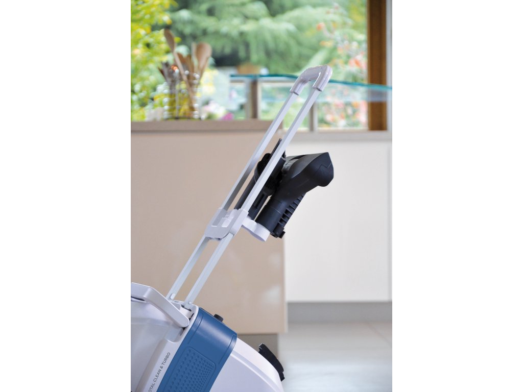Vďaka praktickej predĺženej rukoväti sa pri manipulácii so strojom nebudete musieť ohýbať, čo vám umožní voľný pohyb všetkými smermi. Pripevnite k rukoväti špeciálny držiak a majte všetko príslušenstvo okamžite po ruke.