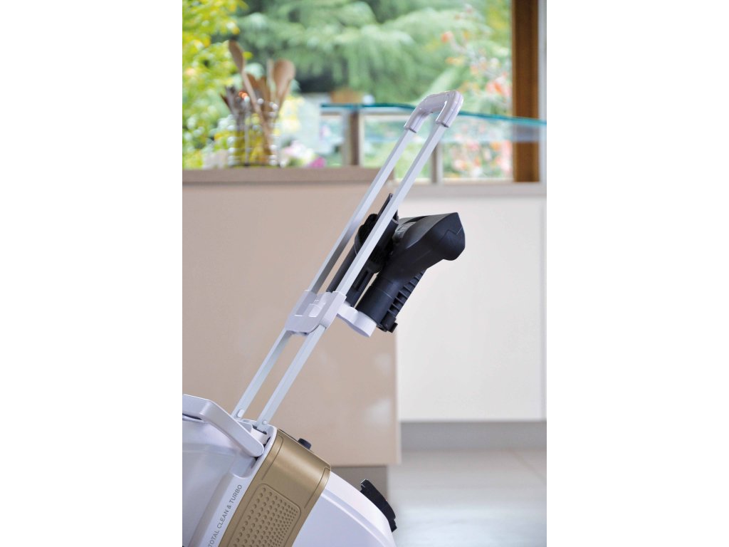 Vďaka špeciálnej rukoväti môžete so zariadením voľne pohybovať v akomkoľvek smere bez toho, aby ste sa museli ohýbať. Na rukoväť možno ľahko pripevniť špeciálny držiak na príslušenstvo, aby ste ho mali vždy po ruke, keď ho potrebujete.