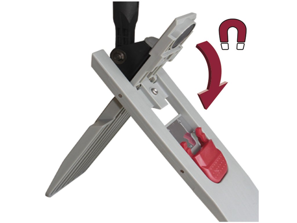 - Stabilný magnetický držiak na mop s automatickým zaistením vo vertikálnej polohe